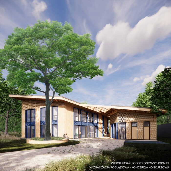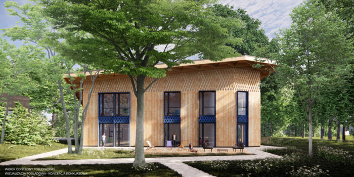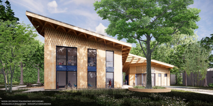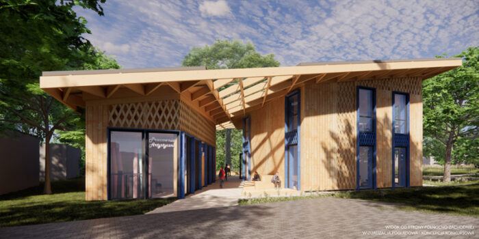 Chcemy stworzyć pawilon parkowy, sprzyjający kreatywności i stwarzający atmosferę relaksu. Pierwowzorem i inspiracją jest „domek na drzewie” – wyraz potrzeby stworzenia namiastki bezpiecznego miejsca, „skrytki”, w której można pomarzyć i snuć plany na przyszłość. Miejsce – baza do zabaw, do którego dorosły może wejść za zgodą dzieci. Lokalizacja, która została wybrana do realizacji PWD sprzyja takiej narracji. Las, w którym powstanie, może być miejscem schowania się przed, czasami trudną, rzeczywistością. Nasz budynek nazwaliśmy Leśną Świetlicą.